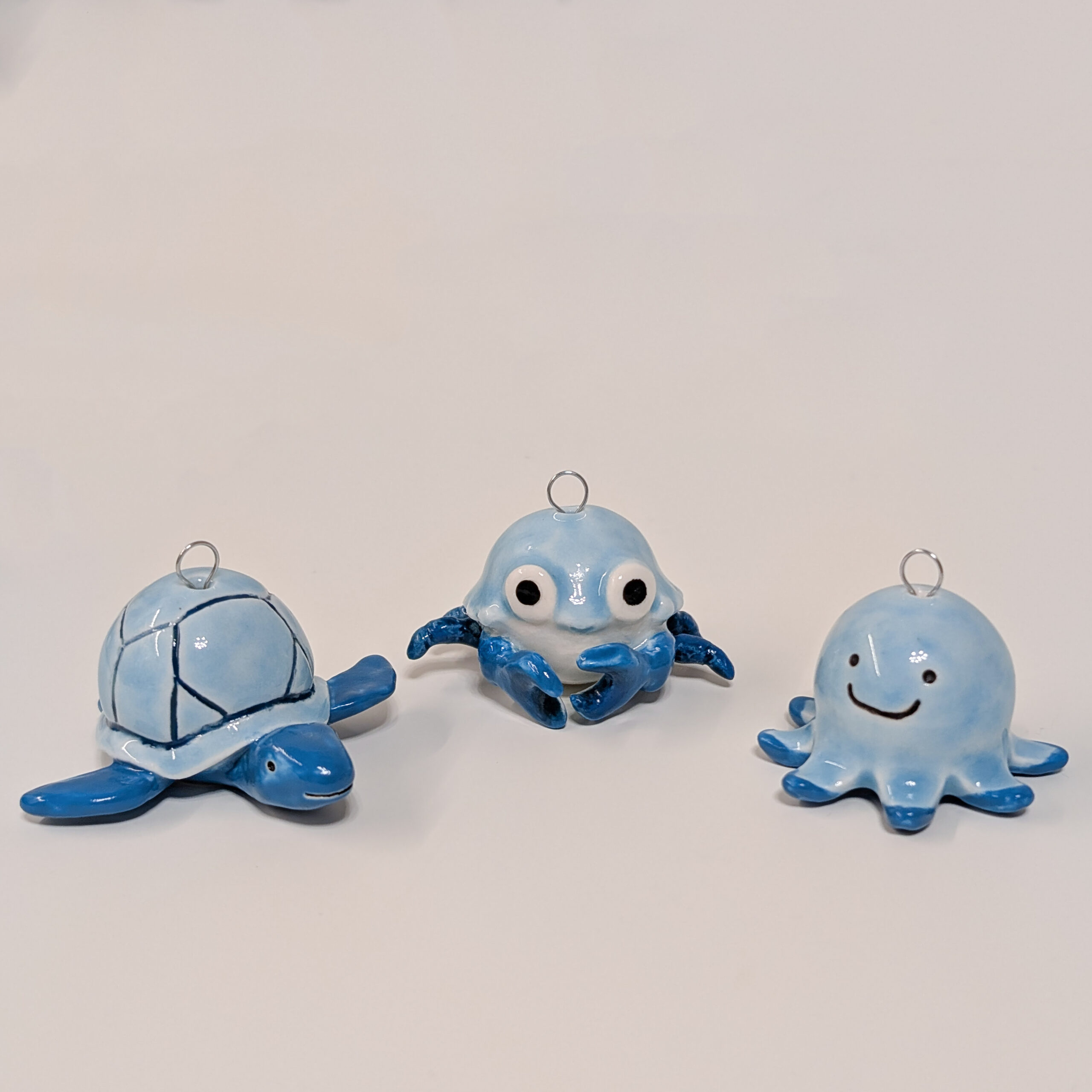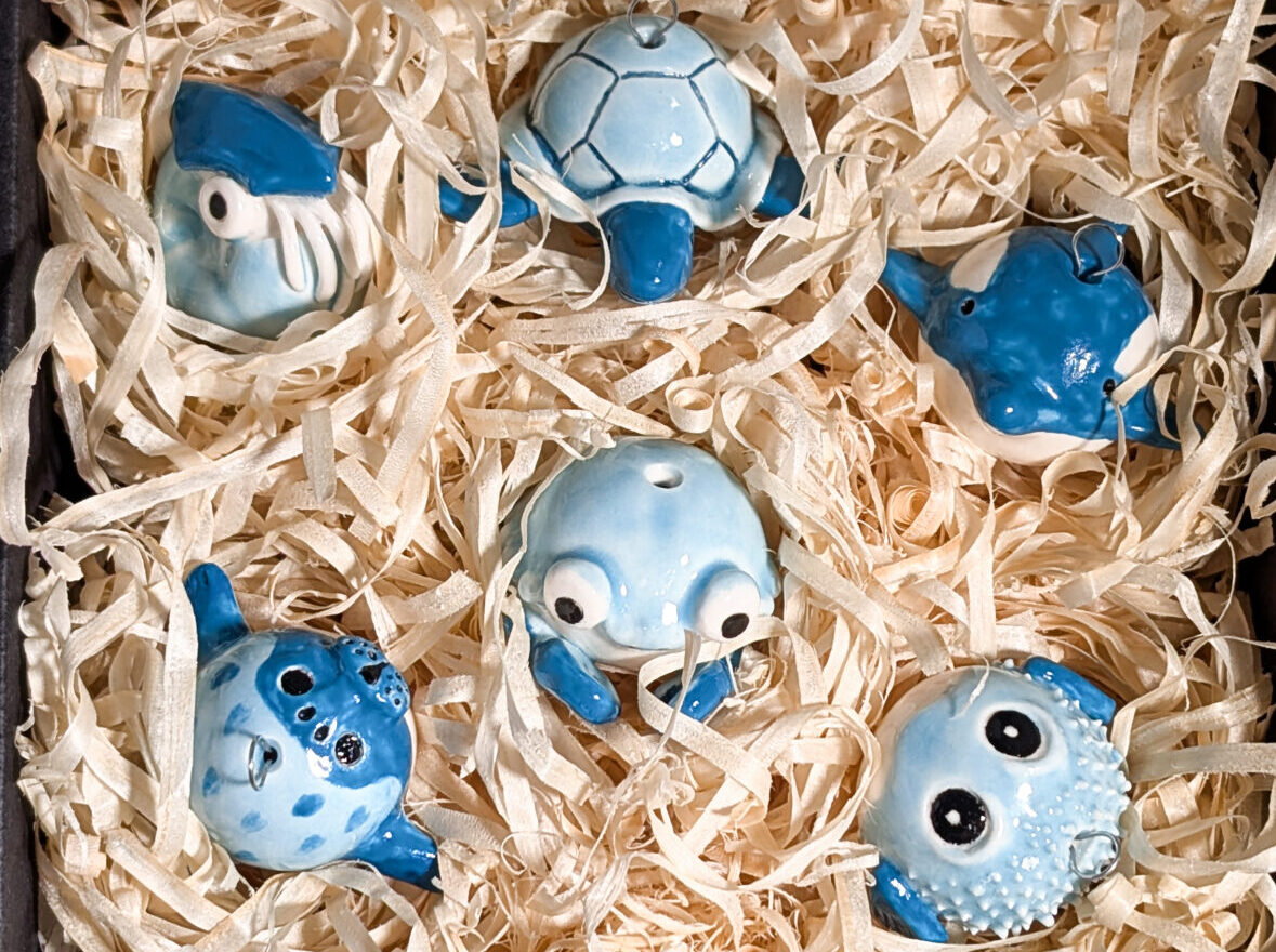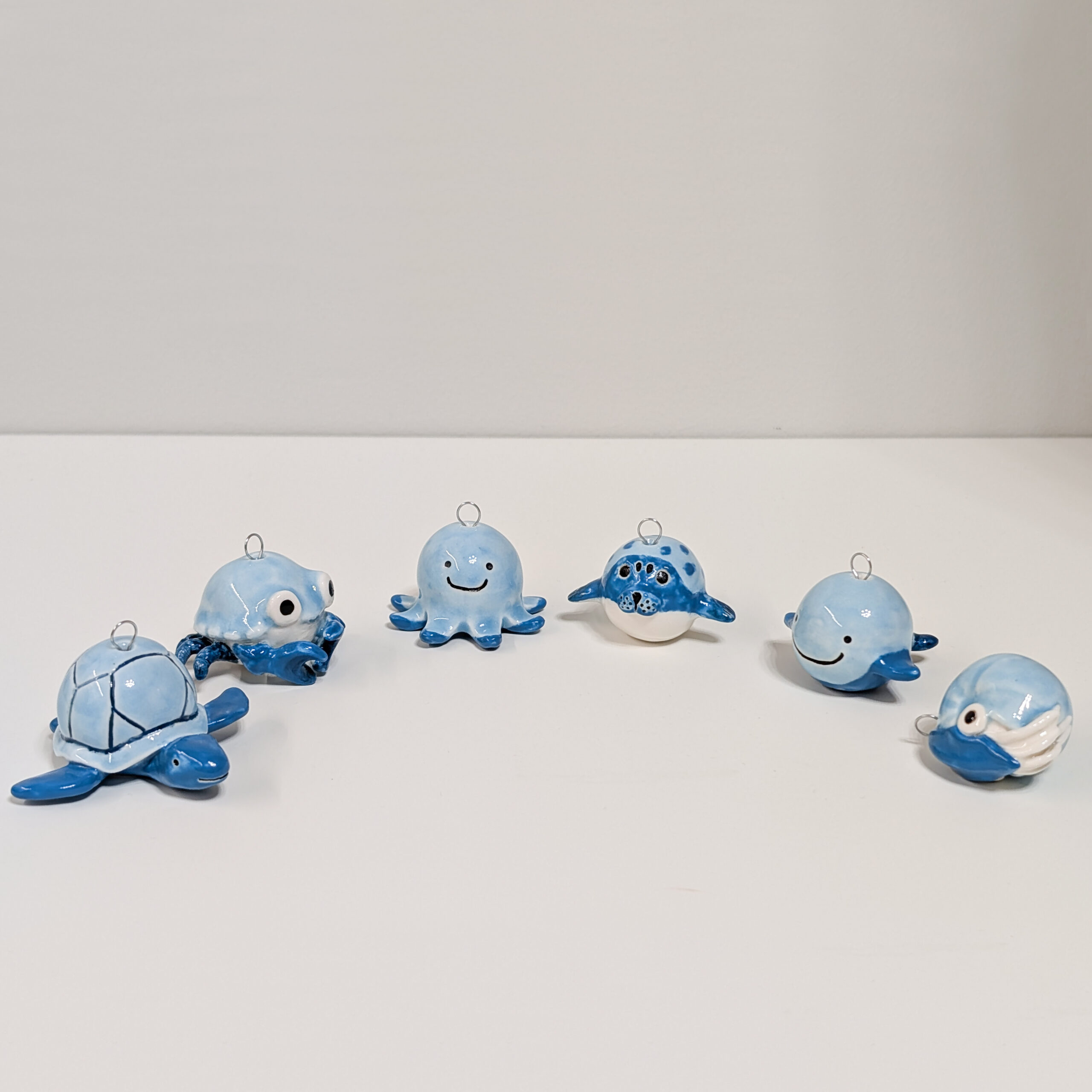 Each peace is individually shaped and glazed by hand. This make each one unique. The set includes six sea-themed decorations — perfect gifts for ocean lovers.