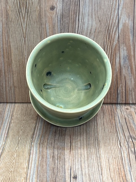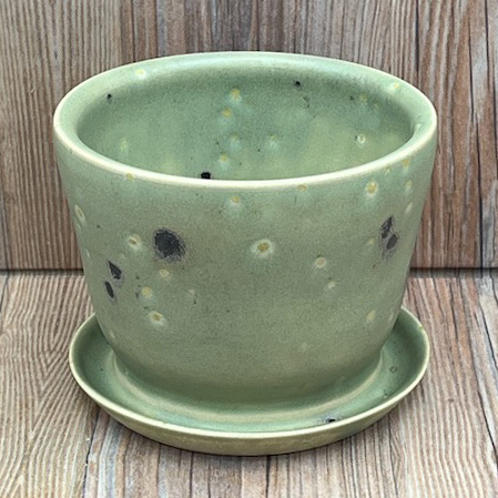 Medium Green Speckled Flowerpot with Integrated Drip Tray and a Satin Finish