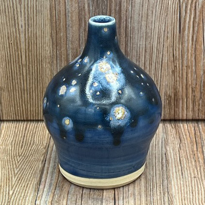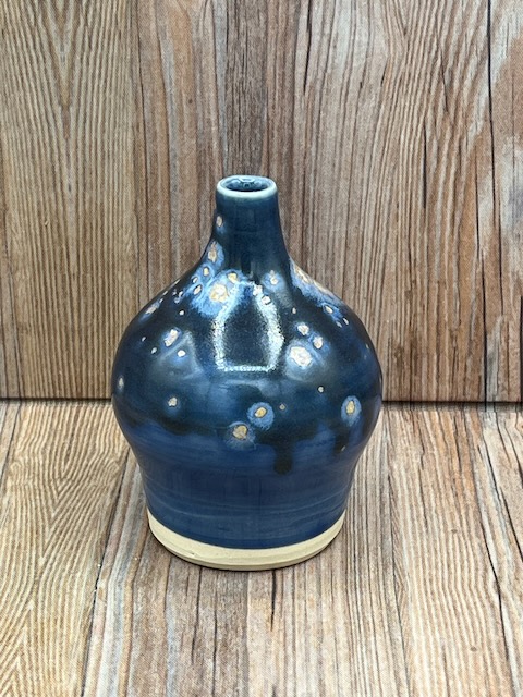 Small Dark Blue Speckled Stoneware Bud Vase with a Gloss Finish