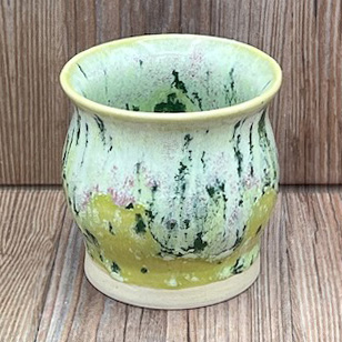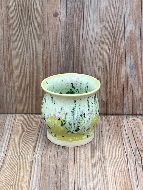 Small Light Green Speckled Vase with Flecks of Forest Green and Lilac and a Gloss Finish